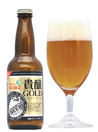 貴醸GOLDは、当蔵のオリジナル特殊製法によって造られる、清酒酵母を使った貴醸エールです。原料に、純米酒を加えて独特の甘みと香りをプラス。さらに加える純米酒にも、あらかじめホップを加え、加温してエキス抽出しています。